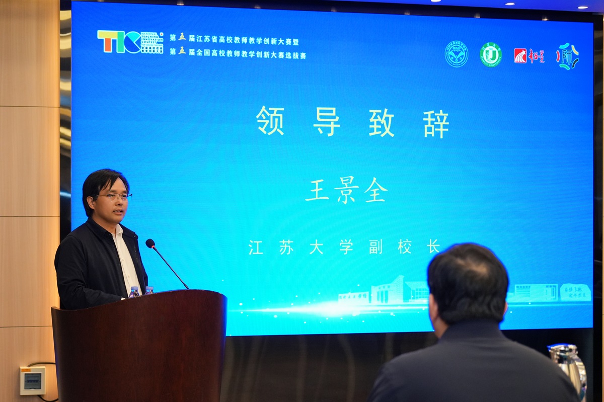 作为本次大赛江苏省赛的承办方,江苏大学副校长王景全代表学校向与会嘉宾致以热烈欢迎,对支持单位表示诚挚感谢。他强调,教育强国是现代化强国的战略先导,江苏高校肩负重要使命。江苏大学扎根江苏,高度重视教学创新,优化学科专业建设,汇聚优秀师资。本次大赛以“推动教学创新,培养一流人才”为主题,是深化教育评价改革的重要举措。江苏大学将珍惜承办机会,全力做好筹备工作,确保大赛圆满举行。