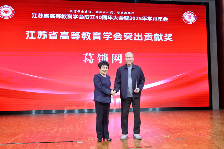 中国高教学会原副会长、江苏省高教学会原会长葛锁网荣获江苏省高等教育学会突出贡献奖。