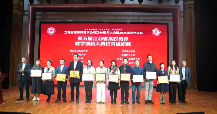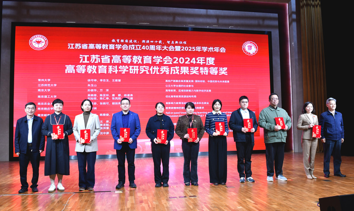 交汇点讯 10月25日,江苏省高等教育学会成立40周年大会暨2025年学术年会在南京举行。会议颁布江苏省高等教育学会突出贡献奖、江苏省高等教育学会高等教育研究卓越成就奖、第五届江苏省本科高校教师教学创新大赛优秀组织奖以及2024年度高等教育科学研究优秀成果特等奖。