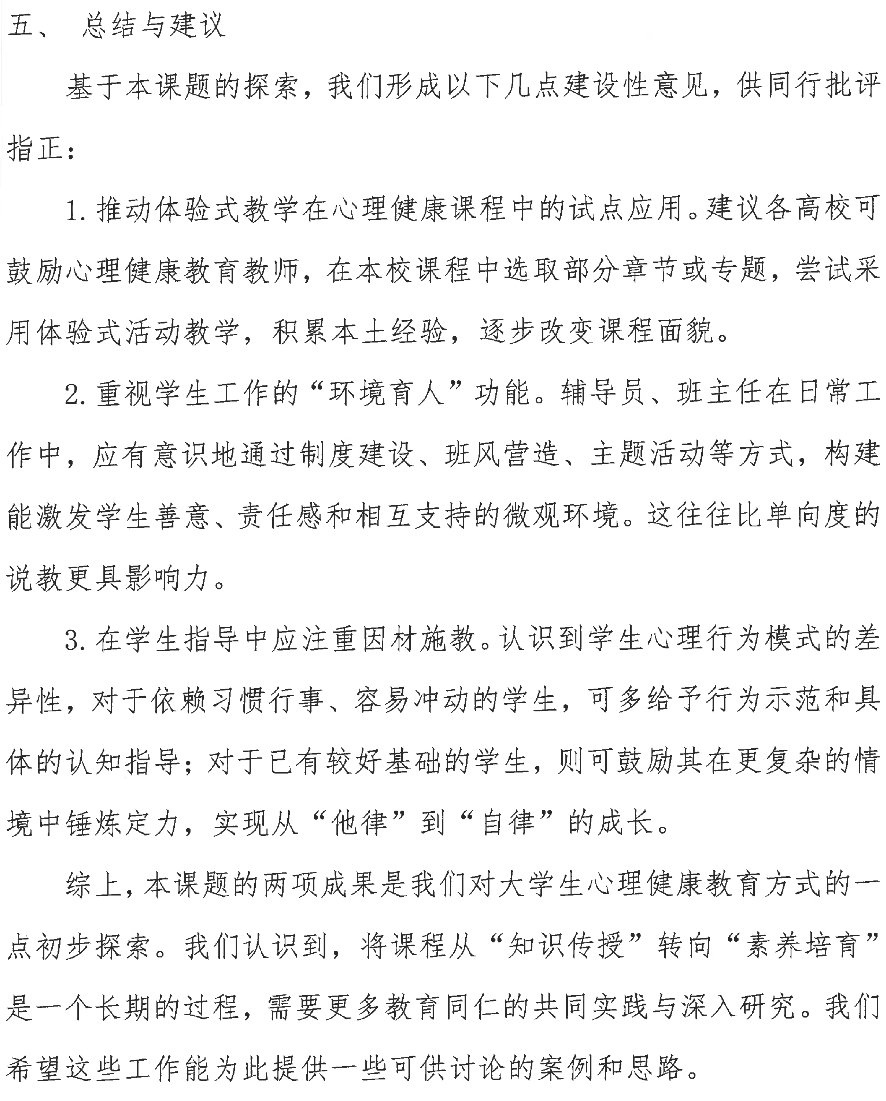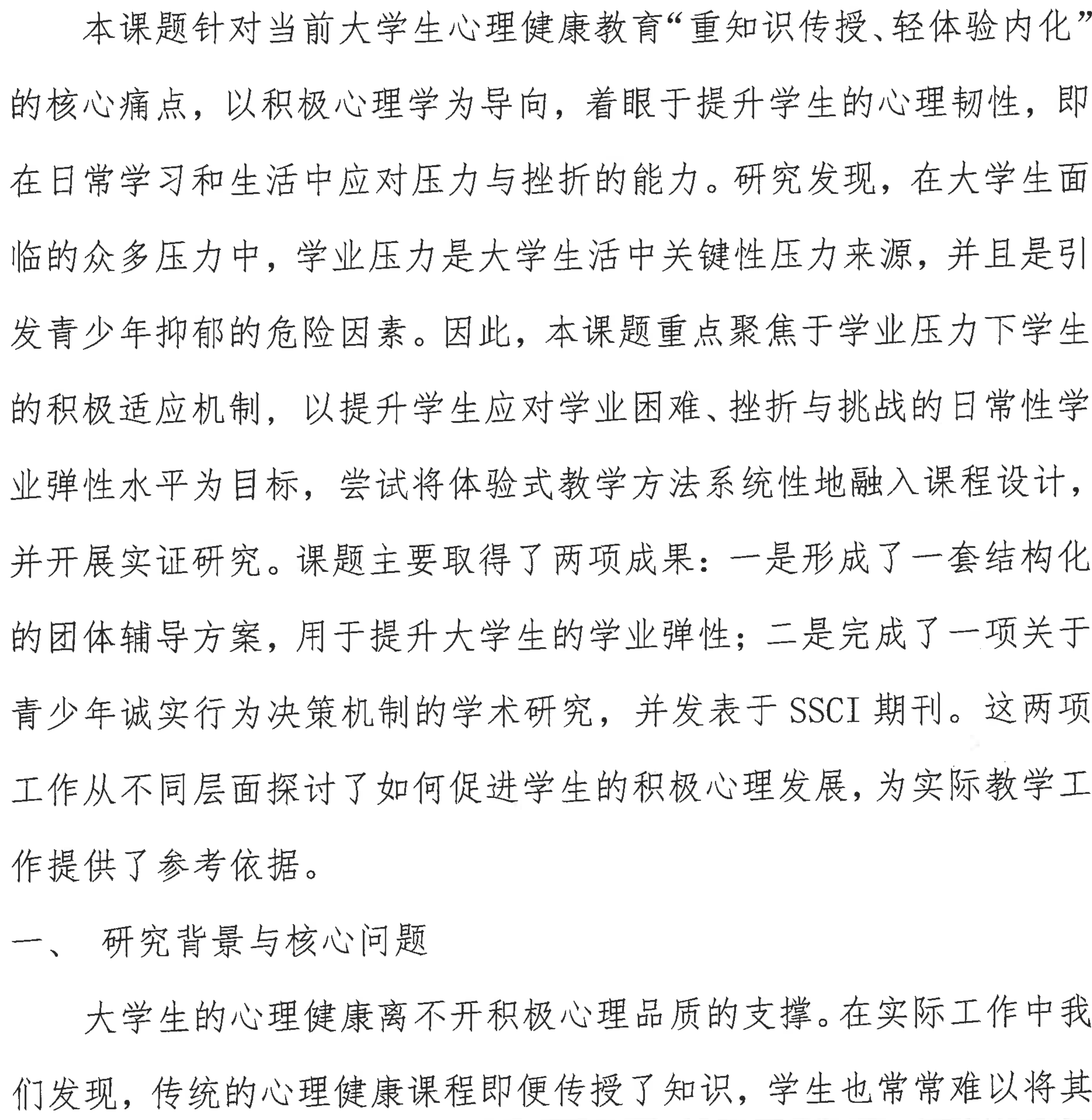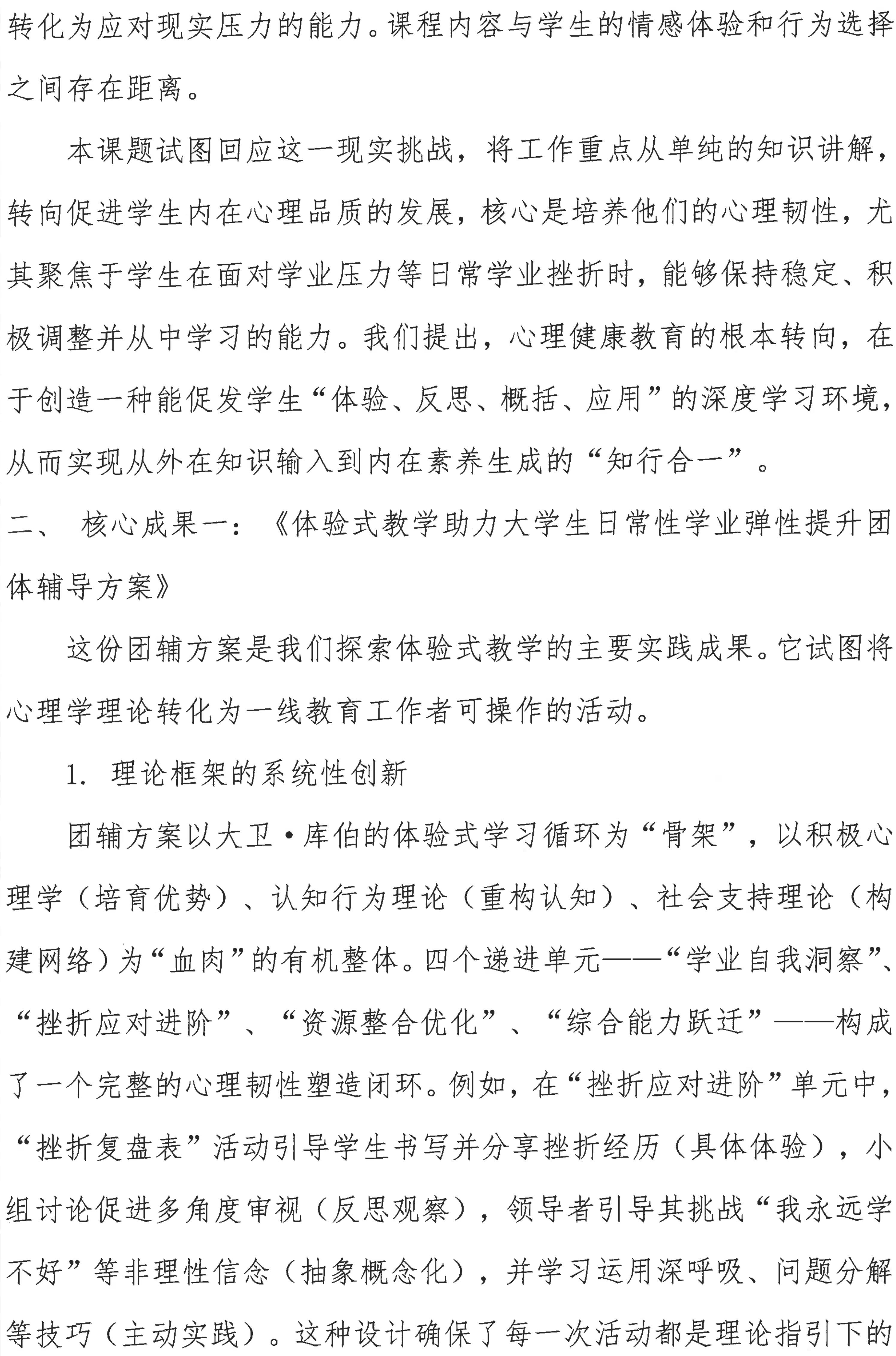 体验式心理健康教育课程对大学生心理韧性培养作用研究