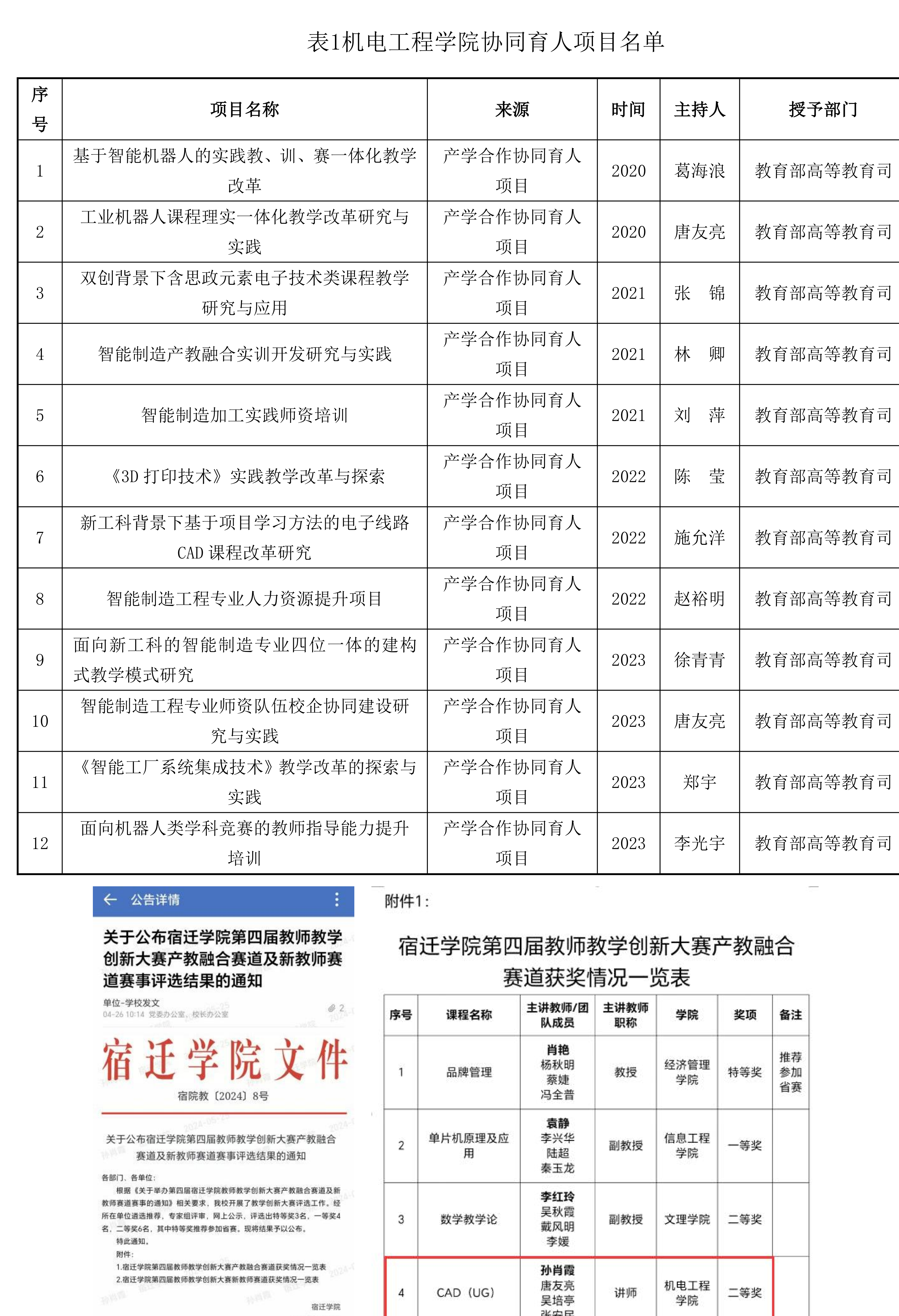 宿迁学院徐青青主持完成了“2024年江苏省高等教育学会《江苏高教》 ”专项课题“新质生产力视域下现代产业学院人才培养模式改革与 提升策略研究”(课题编号:2024JSGJ29),课题组主要成员:刘萍、陈业高、翟崇琳、赵裕明